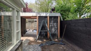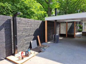 Overkapping met openhaard.